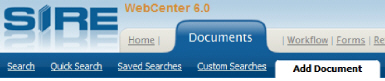 From anywhere within WebCenter click on the Documents tab and select the Add Document link. The Select Cabinet panel will appear on the left side of the screen.