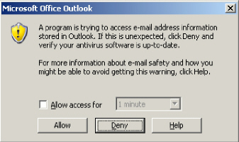A warning may appear from Microsoft Outlook notifying the user that a program is trying to access their email. Check the ”Allow access for” checkbox and choose a time from the dropdown box to allow the system access to the user's email. Using this setting will also allow the user to add additional mail, without being prompted for access, for the time selected. Press the Allow button. The SIRE Email Import window will open and load the user's emails.