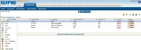 To find the folder to be duplicated perform any kind of search as outlined in the Creating and Performing Document Searches section of this manual. The Search Results page will appear.